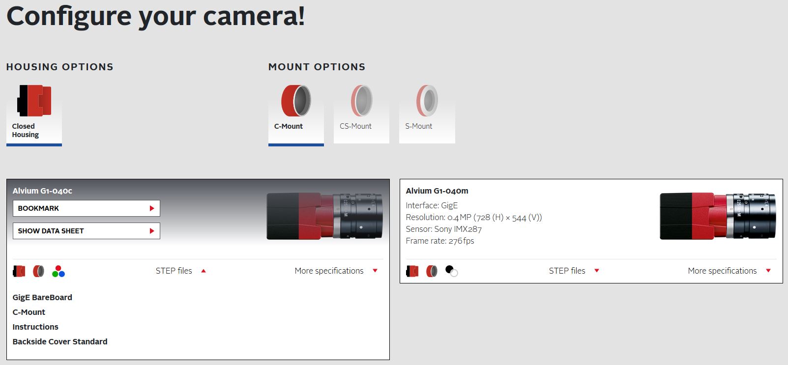 3D CAD files (STEP) for Alvium cameras and accessories